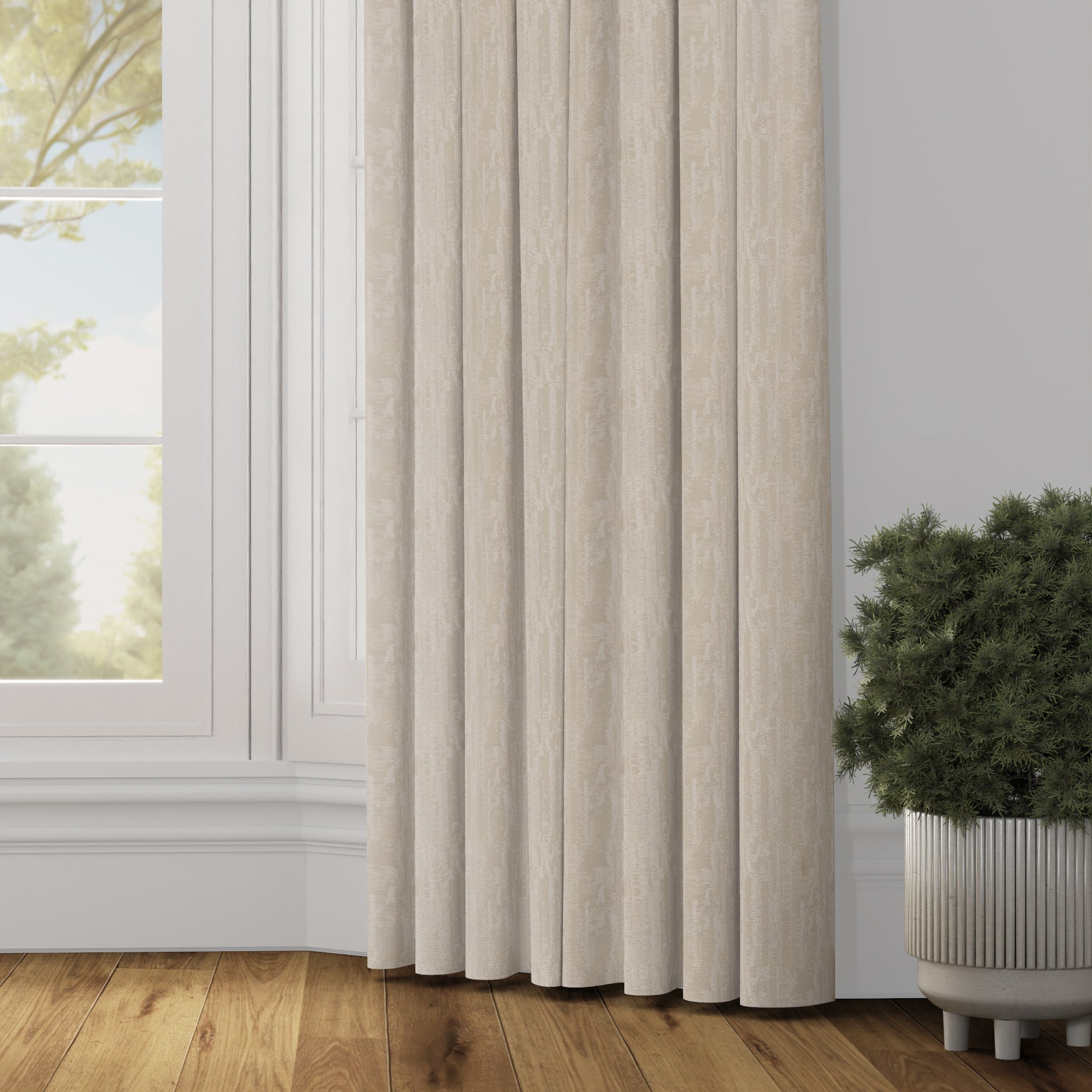 Textured curtains with soft tones and sheen finish, adding elegance to decor.