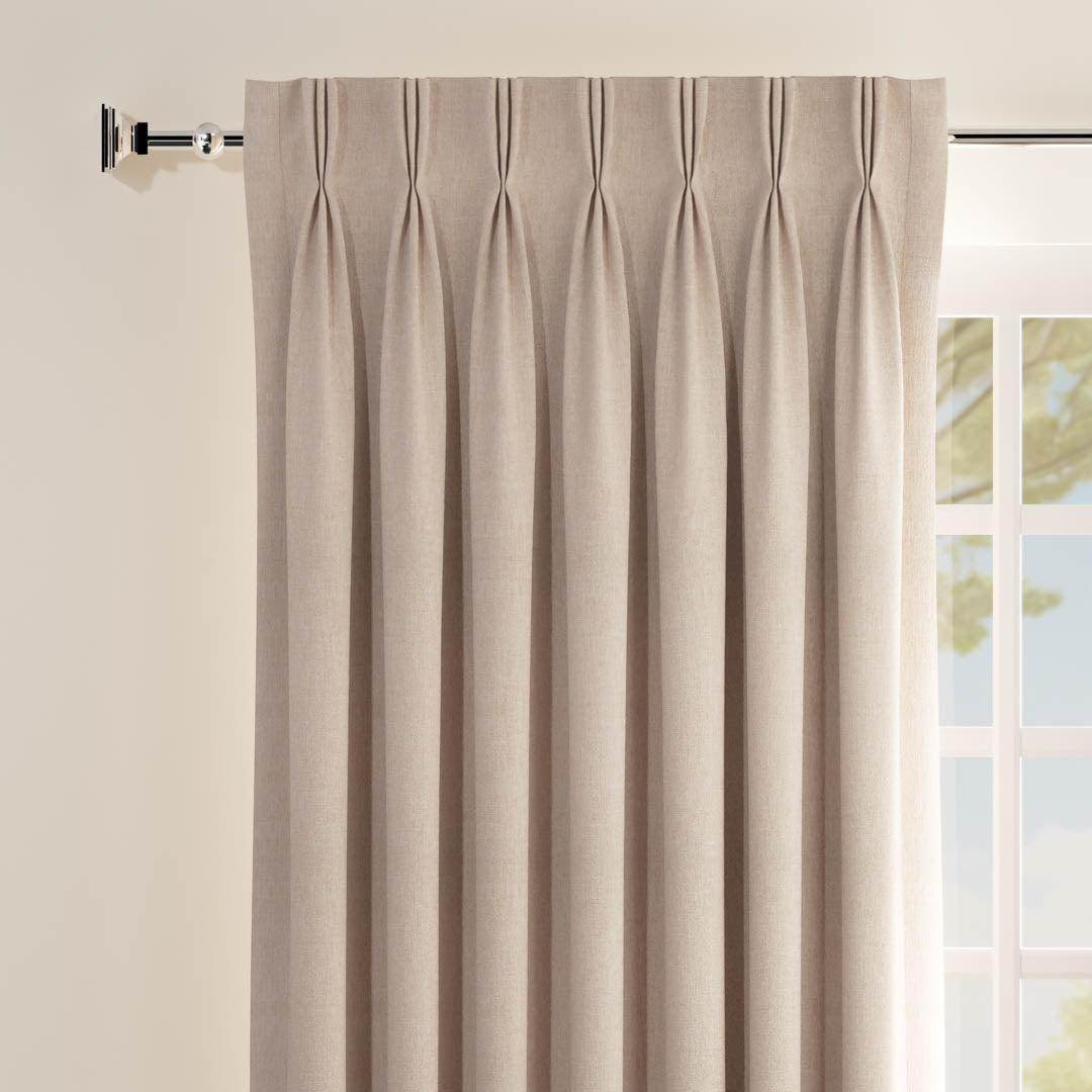 • Pleats pinched 4” from the top for a balanced aesthetic.